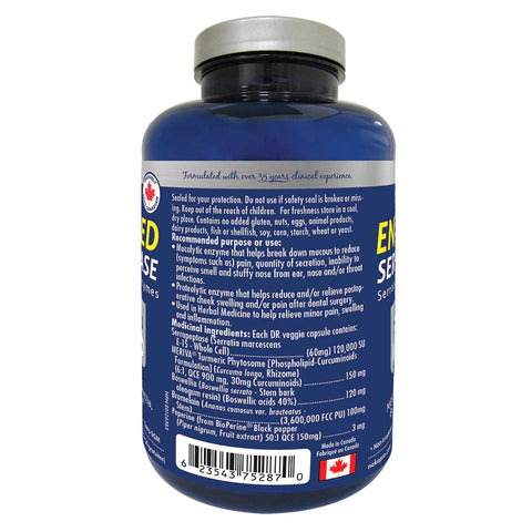 Enhanced serrapeptase. Serratia peptidase enzymes. Featuring 120,000 SU. Delayed release. Enhanced with meriva curcumin, boswellia, bromelain, and bioperine. Non irradiated. Vegetarian. Gluten free. GMO free. Mucolytic enzyme that helps break down mucous to reduce (symptoms such as) pain, quantity of secretion, inability to perceive smell and stuffy nose from ear, nose, and/or throat infections. Proteolytic enzyme that helps reduce and/or relieve post operative cheek swelling and/or pain after dental surgery. Used in herbal medicine to help relive minor pain, swelling, and inflammation.
